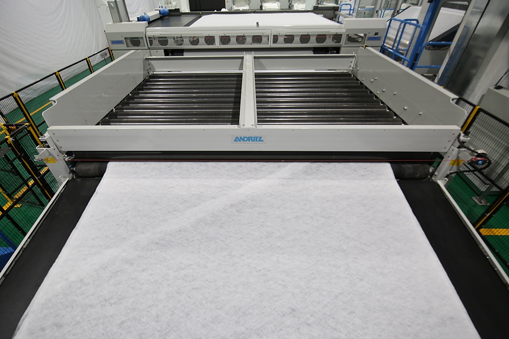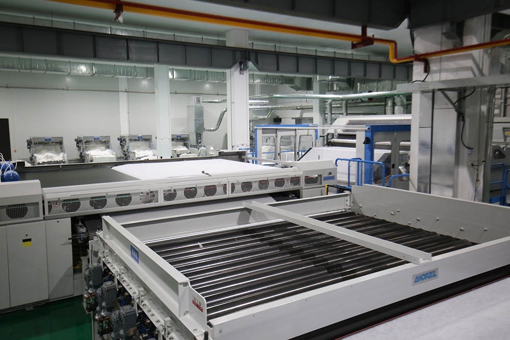 為更好地促進企業的發展,公司于2020年12月進行新的投入,引進法國國際先進水刺無紡布生產線和生產技術,配備先進的污點檢測儀和克重檢測儀等在線檢測儀器,現有國際標準自動化水刺無紡布生產流水線2條和干巾生產線2條,專業生產開發克重30克到100克㎡,門幅小于3300㎜的各種水刺產品及各種底部抽和小包抽棉柔巾,年生產能力10000多噸。本產品可廣泛應用于干巾清潔類,濕巾衛材類,美容護理類,醫用材料等。